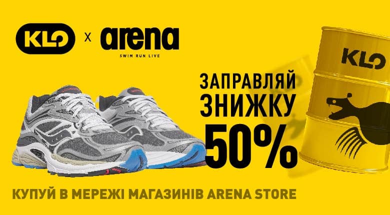 Заправляй від 25 літрів пального із застосунком KLO та отримуй знижку – 50% на кросівки Saucony в мережі магазинів Arena!
